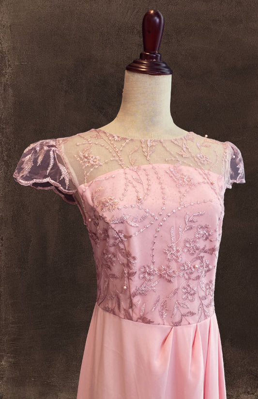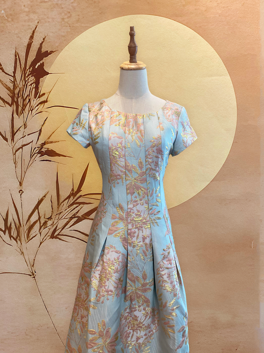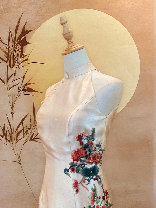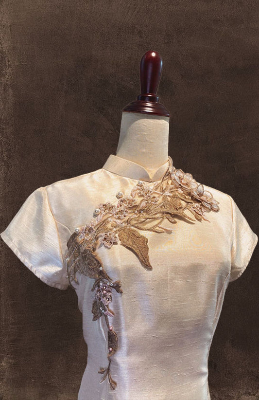 Champagne Thai Silk Cheongsam and Floral Appliqué