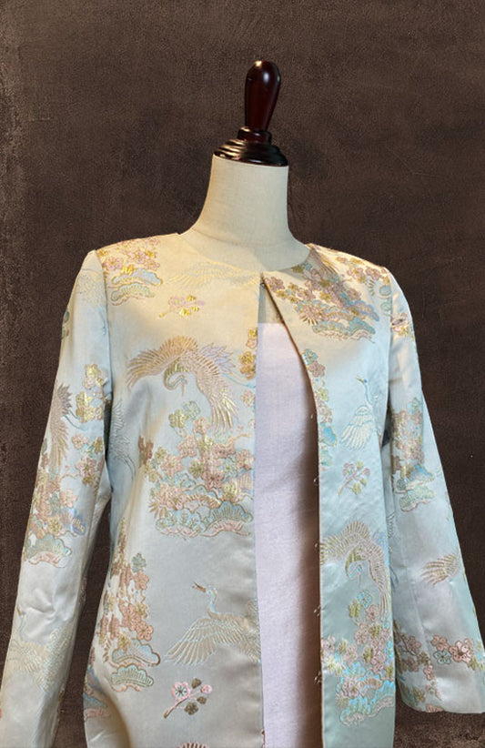 Cream Jacquard Cheongsam and Cream Thai Silk Tang Shirt