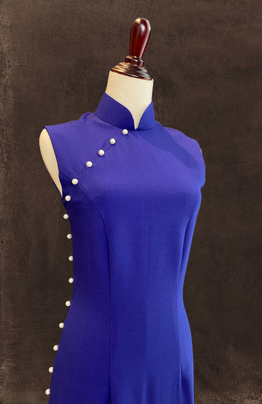 Blue Thai Silk Cheongsam With Cap Sleeve