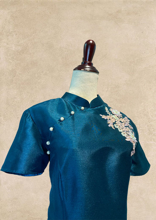 Mallard Green Thai Silk Cheongsam