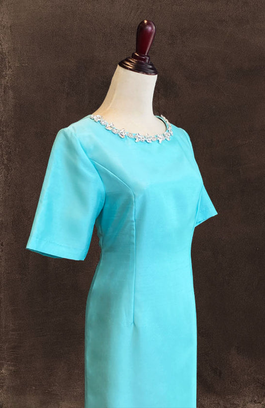 Mint Green Round Neck Thai Silk With Bejewelled Neckline