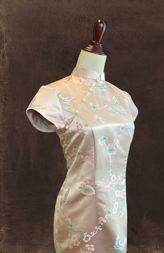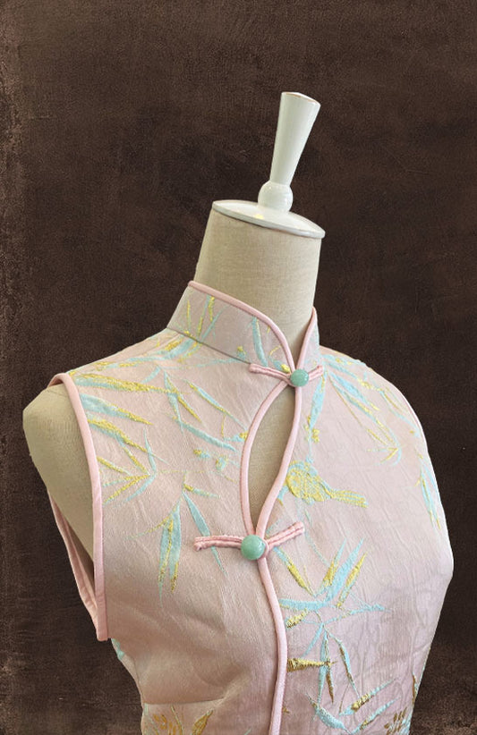 Light Pink Jacquard Cheongsam with Pearl Buttons