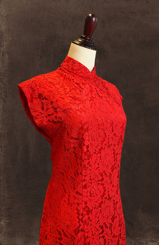 Red Lace Cap Sleeve Cheongsam