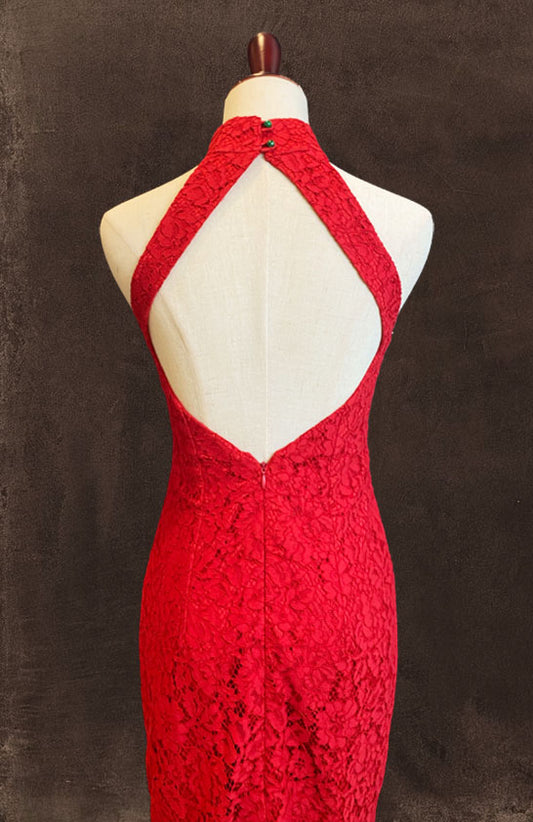 Red Lace Halter Cut Diamond Back Cheongsam
