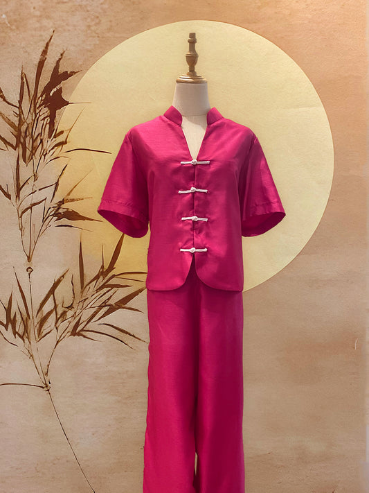 2pc Fuchsia Pink Traditional Top with Frog Buttons and Pants